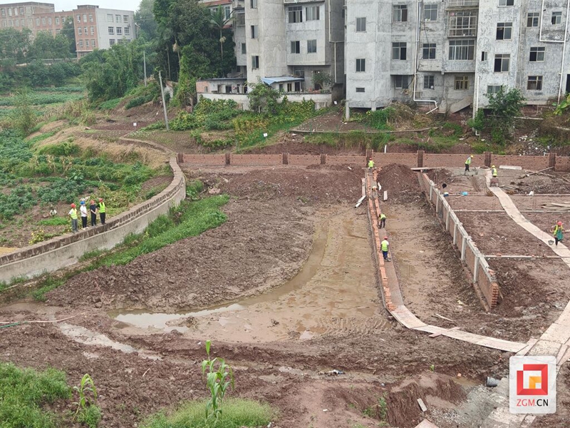 镇溪河流域水生态保护修复工程项目施工现场。(自贡融媒 供图)