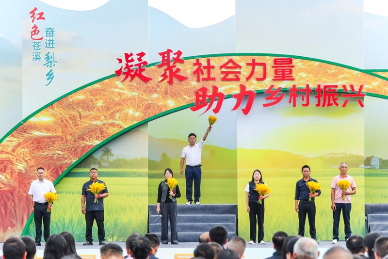 图为水稻收割现场。(苍溪县委宣传部 供图)