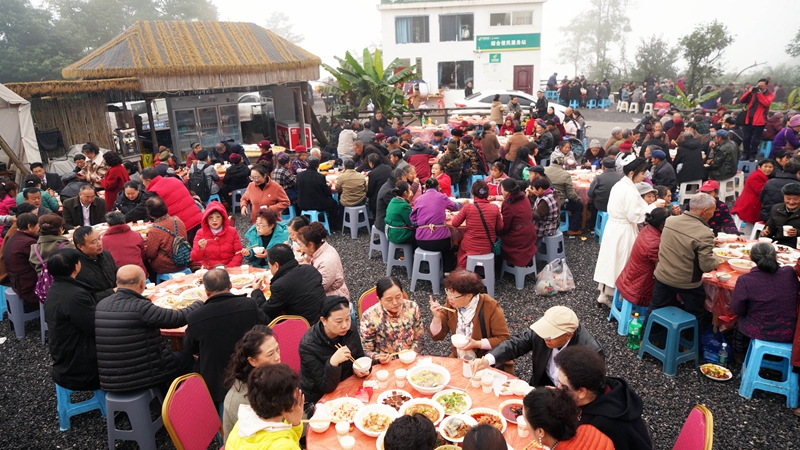 老人们在品尝坝坝宴。(黎涛 摄)