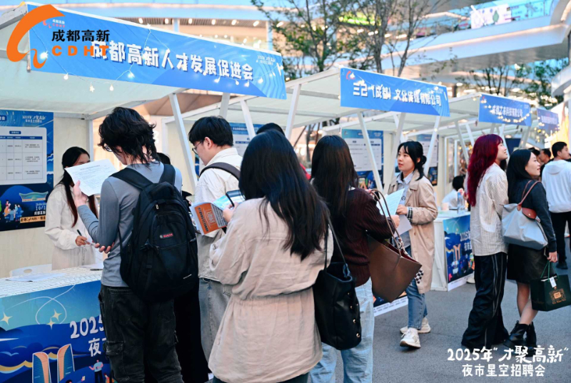 10月11日晚,2025年“才聚高新”夜市星空招聘會(huì)在成都高新區(qū)此地CyPARK舉行。